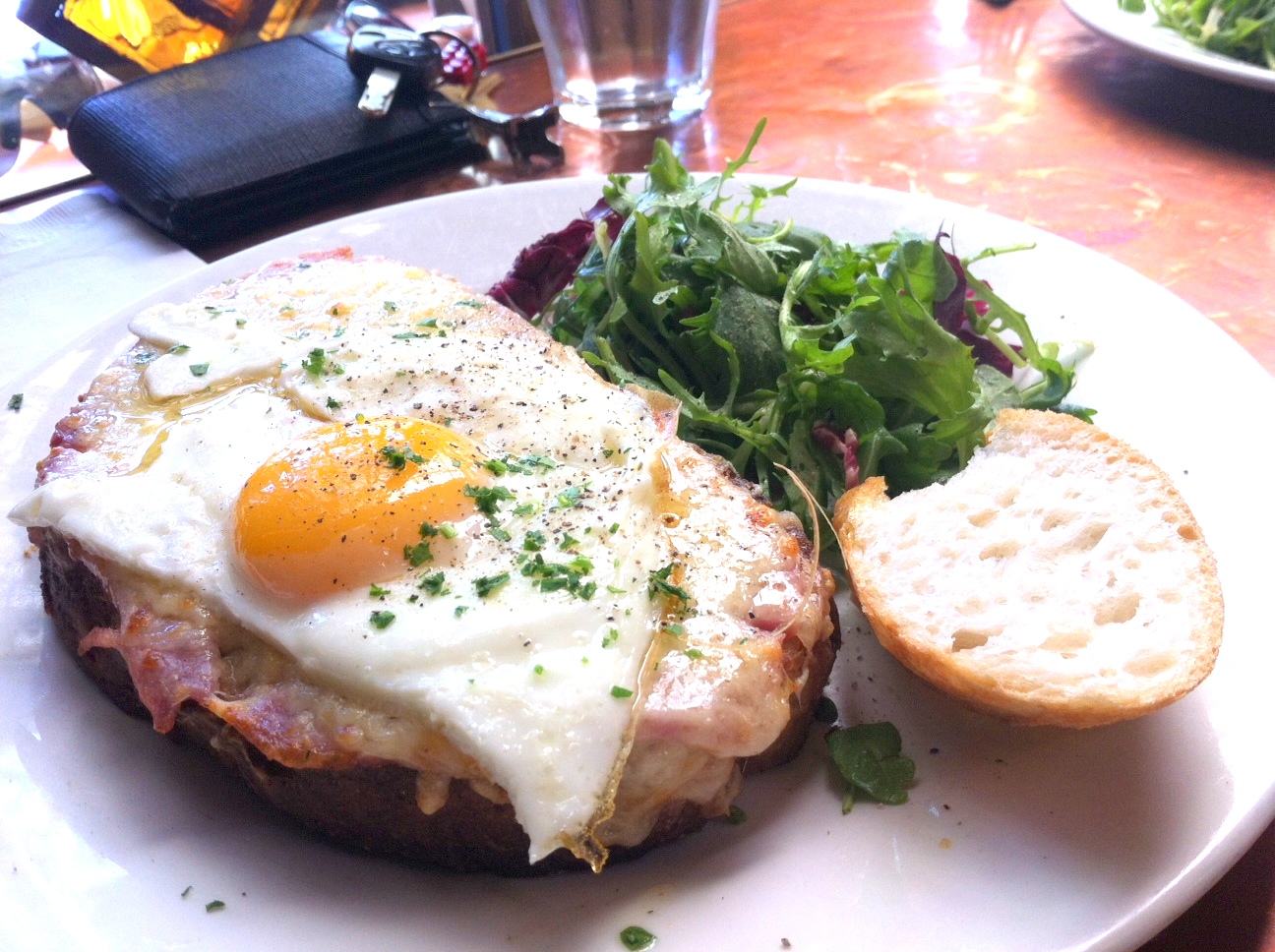 鹹派超道地 很像南法的味道 Croque Madame 就是一片Croque加上起士跟半熟蛋超棒!!! 其實不需要Yelp(美國美食網) 只要多看大家都點什麼 然後跟著他們點就沒錯我們三人都互相share來share去 然後男生們又愛拍照很忙碌(我比較像男生吧?!)